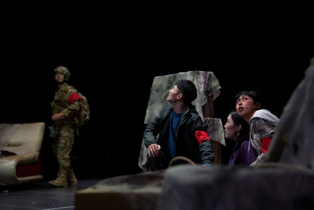 「戰爭」一詞之於我是陌生的,但當俄烏戰爭、以巴戰爭相繼發生,斷垣殘壁的畫面透過新聞報道真實地呈現在我們眼前。這一刻,「戰爭」近在咫尺。在踏入遊心劇場前,我好奇創作者如何透過《當世界只剩下一個出口》(以下簡稱為《當》)講述一個關於「戰爭」的故事。