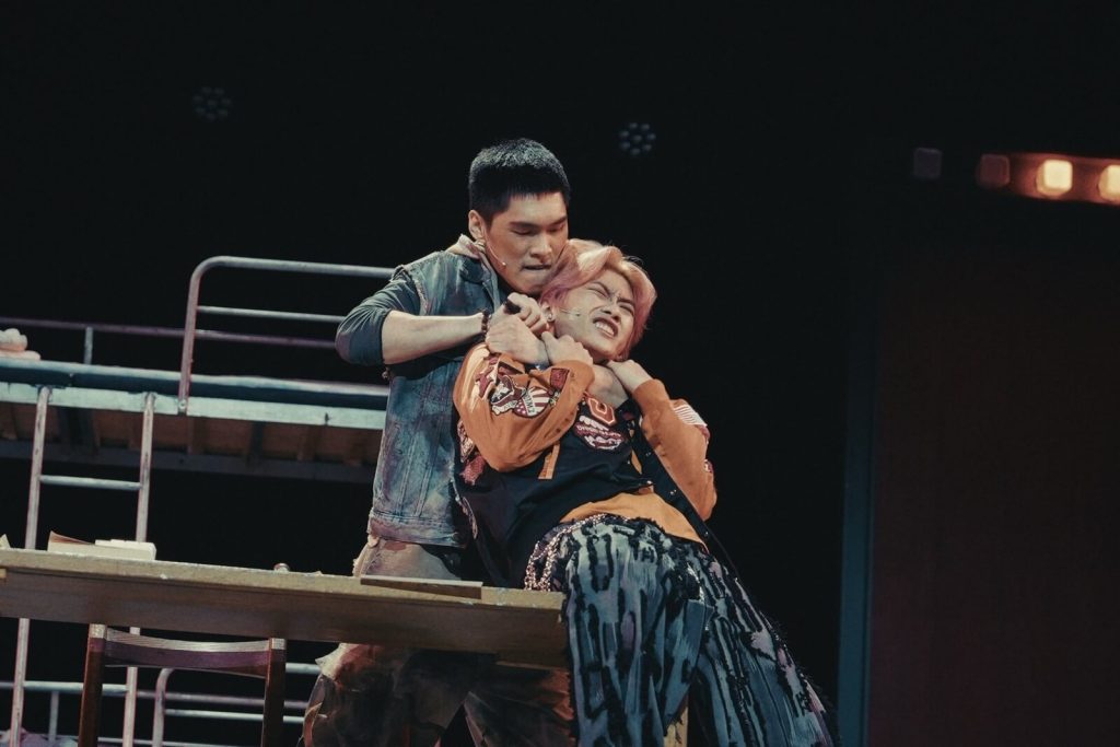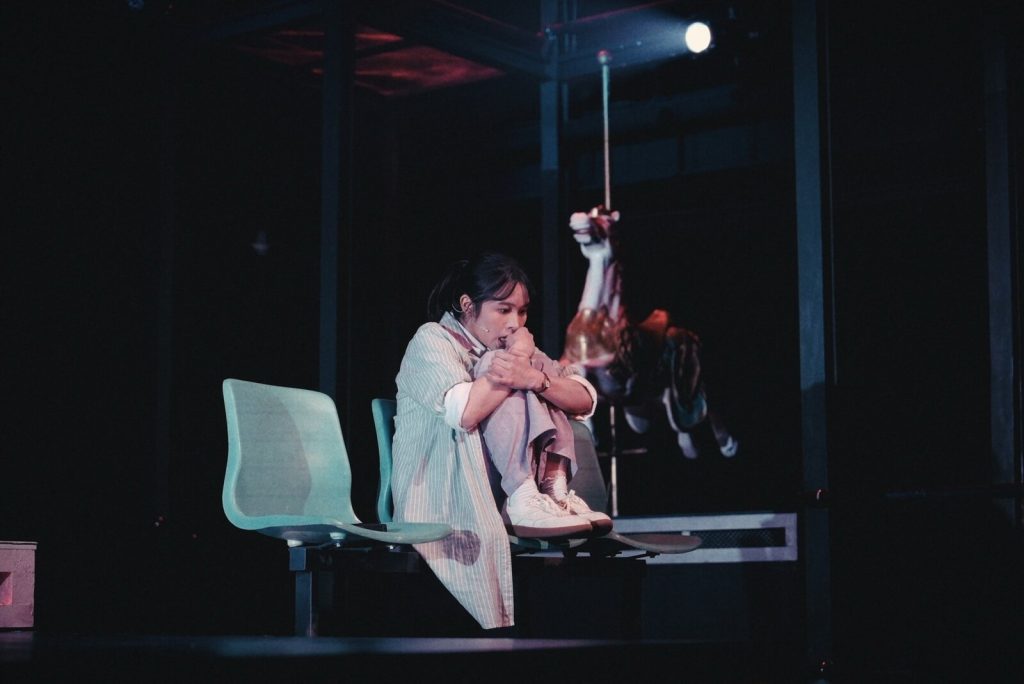 此外,舞台設計、燈光與音效表現令人驚豔。技術人員身穿防護衣,如同遊戲 NPC,而每當角色被淘汰,舞台技術人員拆除場景的動作,更像是將角色的記憶與包袱一層層卸下,細節滿滿。燈光聚焦與音影呈現也極富戲劇性,讓觀眾享受沉浸式的體驗。