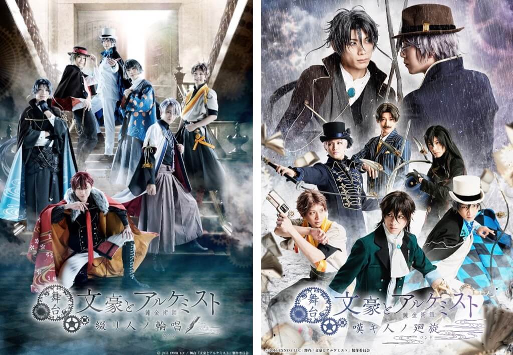 隨後《文豪與鍊金術師》更推出動畫、舞臺劇不同形式的媒介內容,相較於遊戲劇情分散各處,由文豪之間一個個小故事建立起的世界觀,媒介性質差異讓動畫與舞臺劇更著重在推進單一主要劇情。動畫將核心放在與侵蝕文學的敵人戰鬥,穿梭於各個文學作品,尋找出敵人侵蝕的痕跡讓故事恢復原貌,拯救受困書中的文豪。除了延續自遊戲的文豪關係外,動畫也重新演出文學作品情節,讓觀眾一瞥日本近代文學名著的內容。舞臺劇則聚焦在不同文學結社,從北原白秋、尾崎紅葉與底下門生,到無賴派、白樺派,將遊戲裡文豪關係的小故事拓展成更完整的情節。《文豪與鍊金術師》在遊戲、動畫、舞臺劇的設定都有所不同,但核心皆是在文學史世界觀的基礎上,不只談論文學史上的文豪關係與事蹟,也談論文豪個人對於作品,對於文學的正負面情感。雖然在遊戲中並未明言世界觀背景,但在動畫裡直接點出了「文豪」是由社會對於文學家的想像、記憶集結成的「思念體」,進行「轉生」來到這個世界,並提出:「你是太宰治卻也不是,是由太宰治的形象誕生出的幻影。」由真實人物「轉生」成文豪(思念體)這一設定,擺脫了歷史束縛,在「還原」文學史的基礎上,更「創造」出文豪彼此談論自我,談論文學價值的篇章。