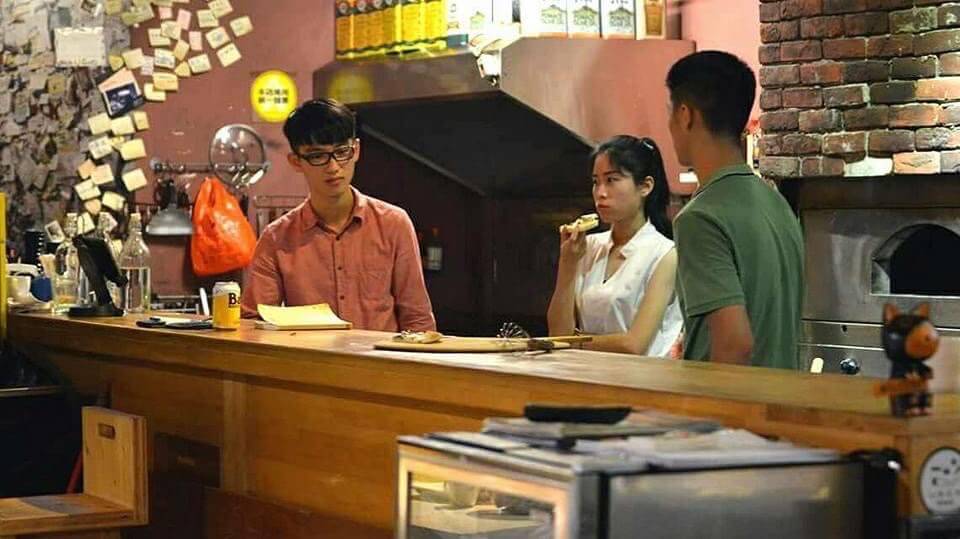 《第1826天》我們選擇了一家在信義區四四南村附近、巷子裡的披薩店,故事講述的是一家即將倒閉的披薩店,演出這天是營業的最後一天——第1826天。舞台區圍繞著這家餐廳的吧台,觀眾就坐在平時餐廳的內用區域,只使用場地現有的燈光,道具也是使用最簡便且可攜帶的工具,因為還要從遙遠的臺南扛上來。印象深刻的是,為了讓大家看到我們在製作披薩撒起司的模樣,但又考量起司昂貴、也不適合放在室溫這麼久,所以我們就將裝水果的網格套子剪碎,當作起司來使用。雖然有點鬧,但因為起司被看見只是一瞬間的事,所以就也還過得去,不會過於突兀。